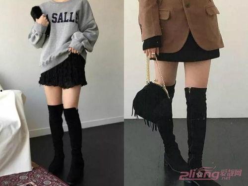 1. 短裙搭配:过膝靴与短裙的搭配是最经典的,可以突出你的大长腿。